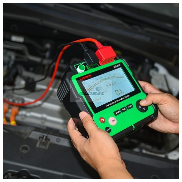 Tester izolacije ES200 je opremljen z napredno programsko opremo za merjenje in obdelavo podatkov, ki omogoča izvedbo popolnih meritev izolacijskega upora, napetosti in drugih parametrov v hibridnih vozilih. Zaradi njegovega zanesljivega delovanja in uporabniku prijaznega upravljanja je idealen za meritve na kraju samem in vzdrževanje vozil z visokonapetostnimi baterijami in napajalnimi vodi. To je še posebej pomembno po popravilih vozil z visokonapetostno tehnologijo, saj zahteve proizvajalca pogosto določajo končni preskus izolacije.